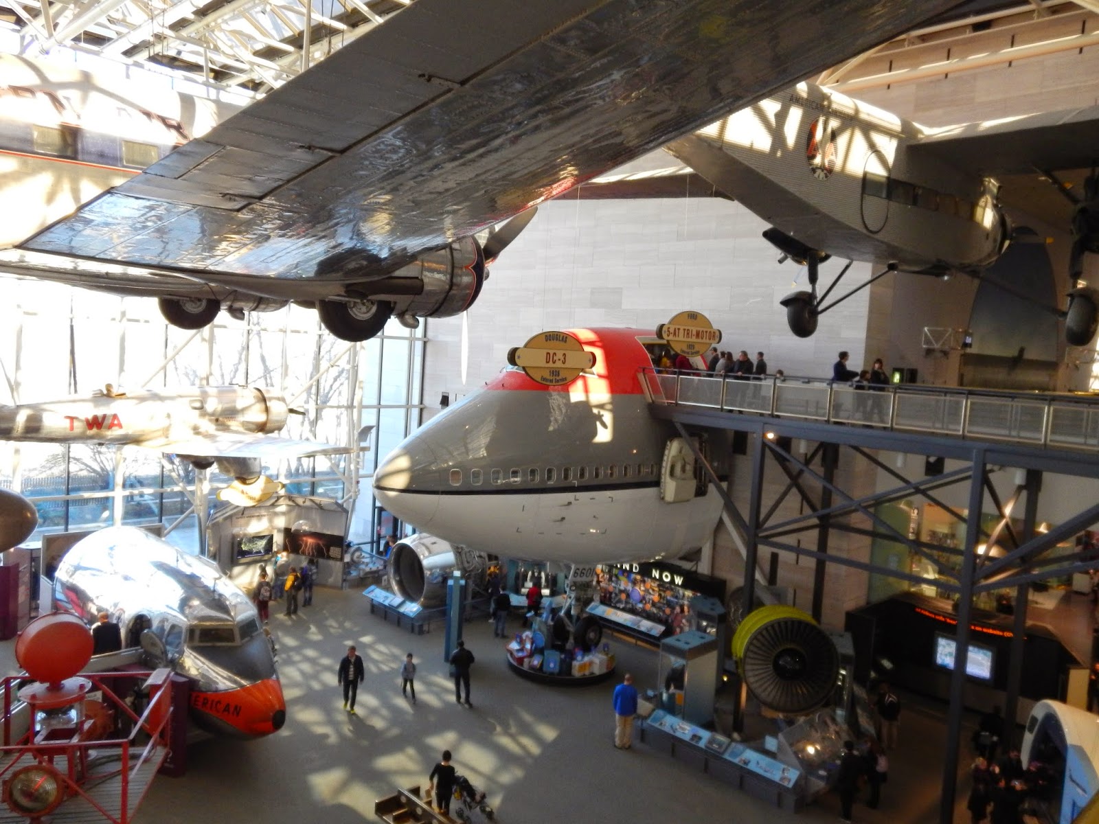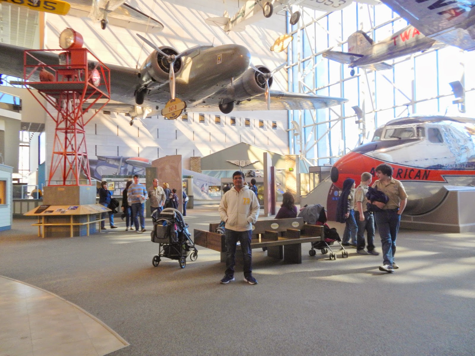 एयर एंड स्पेस म्यूज़ियम सन १९ ७ ६ से टूरिस्ट के देखने के लिए खुला होने के बावजूद आज भी डीसी की सर्वाधिक देखने वाली जगहों में से एक माना जाता है। यहाँ पर लगभग डेढ़ लाख स्क्वायर फ़ीट से ज्यादा जगह में कई सारे ऐतिहासिक वायुयान एवं अंतरिक्षयान रखे हुए हैं। जिनमे से कुछ असली हैं और कुछ उनके मॉडल। मंगल गृह एवं चाँद पर जाने वाले यानों को देखकर तो असीम आन्नद की प्राप्ति हुयी ,इसके आलावा यहाँ पर वायु यान के विकास के इतिहास के बारे में भी पूरी जानकारी उपलब्ध है, लगभग सभी वायुयान में हमलोगों ने चढ़कर उनके मॉडल्स को अच्छे से देखा और समझने की कोशिश की। अगर कोई वायुयान या अंतरिक्ष यान के विषय में रूचि रखता हो तो उसके लिए तो ये स्थान स्वर्ग सामान ही है ,क्यूंकि यहाँ नजर पड़े वहां अलग अलग प्रकार के विमान ही दिखाई पड़ते हैं। ये जगह आराम से समय ले के पूरा दिन लगा के घूमने वाली है,साथ के साथ इसके खुलने का समय सुबह दस बजे से शाम के साढ़े पांच बजे तक है और इंट्री तो यहाँ की फ्री ऑफ़ कॉस्ट है ही ,तो कभी भी आया जाया जा सकता है। सो इसलिए हमलोग कुछ देर यहाँ घूमे फिर बाहर निकल कर पेट पूजा करी और दुबारा से यहाँ रखे हुए विमानों का आनन्द उठाया। कुछ विमानों के मॉडल आप लोग भी देखिये-
