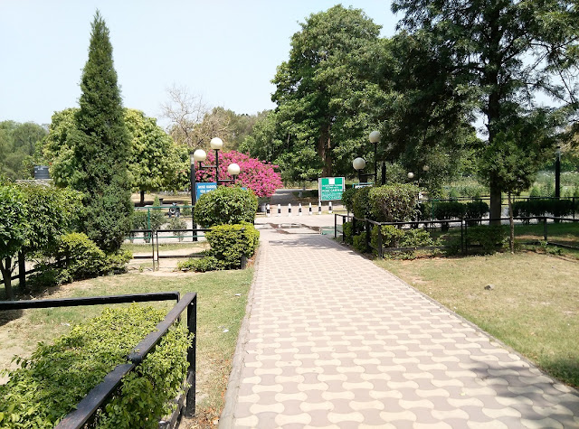 अपनी मुश्किलें गिनाते गिनाते सरदार जी ने यहाँ से डेढ़ किलोमीटर की दूरी पर स्थित रोज गार्डन या कहिये तीस एकड़ भूमि में फैले हुए जाकिर हुसैन रोज गार्डन पहुंचा दिया।यहाँ पर अलग अलग सौलह सौ प्रजातियों के गुलाब पाये जाते हैं।हालाँकि पहाड़ों में पीला बढे होने के कारण मुझे भ्रम था कि मई के महीने में गुलाब तो खिला रहता होगा ,पर यहाँ एक भी गुलाब नहीं दिखाई दिया।प्रवेश द्वार में पहुँचते ही एक बोगनबेलिया से लदा हुआ पेड़ दिखाई दिया,जिसने कर लिया। यहाँ के उम्दा किस्म के रख रखाव और साफ़ सफाई के बारे में तो मेरे पास कहने को शब्द ही नहीं हैं। यहाँ पर करीने से लगे पेड़ों की छावं ने राहगीरों को अपने आँचल में आशियाना दे रखा था। खैर हम यहाँ ज्यादा देर नहीं रुके क्यूंकि गुलाबों की अदभुत छटा जिसे देखने की कल्पना कर के हम आये थे वो यहाँ कि गरम आबोहवा के कारण पहले ही मुरझा चुकी थी,और गर्मी अलग थपेड़े लगा रही थी। इसके अतिरिक्त हमें इस बात का भय भी था कि कहीं गाड़ी हमें बीच सफर में छोड कर चले न जाये। यहाँ से फटाफट बाहर निकले तो अपनी डबल देकर को खड़ा देख कर जान में जान आई। इसके बाद अगली मंजिल थी सेक्टर स्थित गवर्नमेंट म्यूज़ियम और गैलरी।