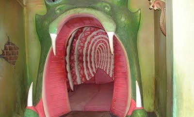 थोडा आगे बढ़ने  पर ही दिखाई देती है एक खड़ी हुई ट्रेन। जो की ट्रेन न हो कर के जलपान गृह है, फिर नजर आता है नाचता हुआ फाउंटेन जो कि बच्चों का प्रमुख आकर्षण है। फिर कहीं पर दिखते हैं बाल हनुमान तो कहीं पर दस सर वाला रावण। उसके बाद देखिये ये तिलस्मी दरवाजा दरवाजा जिससे बाहर  निकलने के बाद भी मन में डरावने सफ़र की यादें बरकरार रहती हैं। कहीं पर भूतों की आवाजें, तो कहीं पर अँधेरा,कहीं पर अनजान से रास्ते जिन्हें देखने पर लगता है कि गिरना तो पक्का ही है।